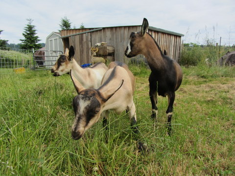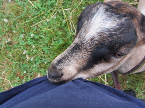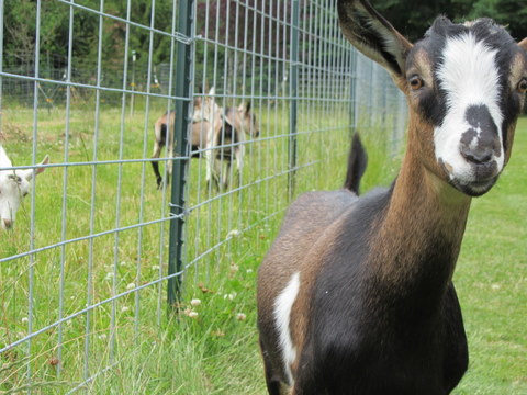 Let me start by saying, baby goats are AWESOME! Not only are they cute, but they’re tons of fun to play with. These goats are “bottle babies”. They were bottle fed at least once/day from the time they were born, to make sure they would bond to humans. They are now between four and five months old and they love to be around people. I go out into the pasture with them every day to pick them up, scratch them, and chase each other around. As kids, they are very much into experiencing the world through nibbling….constantly. Walk into the pasture and they will surround you, then nibble on your shirt, pants, shoe laces, and hands. I put up a grain feeder for them and the first thing they did was try to nibble it to death, then they tried to destroy it by jumping on it. I’ve rebuilt it twice now. These little biters are hell on equipment. They are also masters of escape. It took a little less than ten minutes for the first goat to escape the pasture by jumping into the hay feeder and then jumping over the top to freedom. The next week, another one found a tiny hole between the barn and the fence and made his escape (of course, I wasn’t home – THANK YOU, HONEY for wrangling the little weasel back into the pasture – LUV YOU!….I see another Coach purse purchase in my future…damn goat…) It’s also clear, that Thunder will be the alpha male. He’s friendly, aggressive, and the first one to cause problems. He was the first jump over the hay feeder, the first one to jump onto the grain feeder, the first one to break the grain feeder, and he’s the largest of the six. He was also the first to jump on me, which means me and him will be “going rounds” later in the man vs. goat wrestling match to determine who will be the alpha in the herd (hint: I’m undefeated and have no plans to lose or retire).