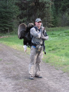 On Saturday afternoon, we split up in different directions to quickly scout a new area. Forty minutes later, Chad arrived back at the truck with this gobbler in the bag.